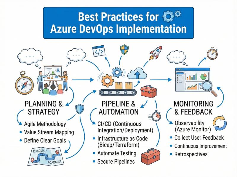 • Release Management: Automate and monitor releases using Azure Pipelines to ensure faster and more reliable deployments.
