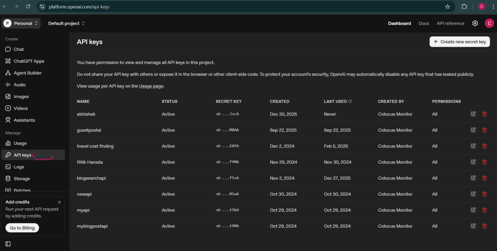 The OpenAI API key is PAID and BILLING IS ACTIVE
