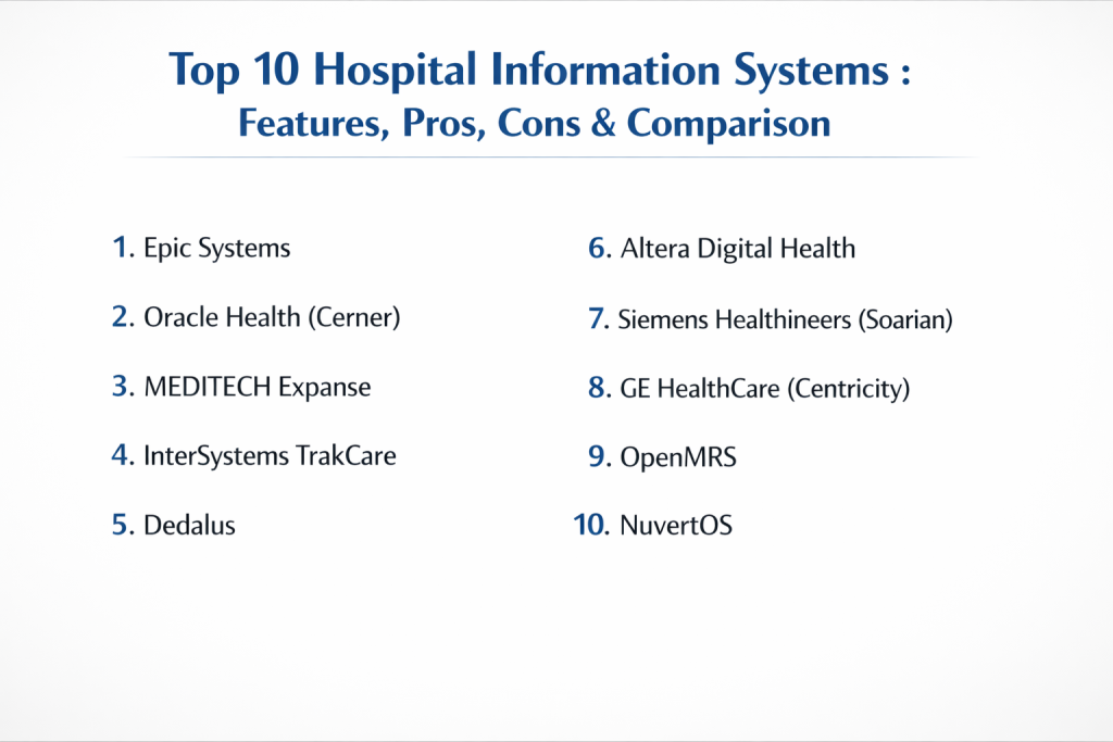 Top 10 Hospital Information Systems: Features, Pros, Cons & Comparison