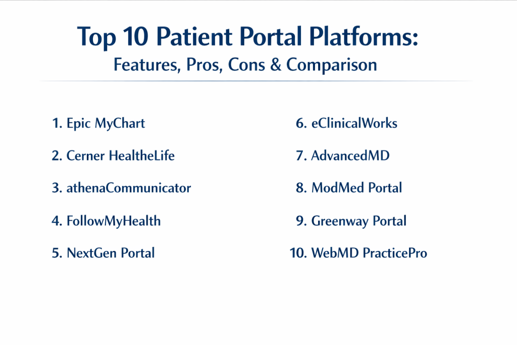 The selection of these top ten patient portal platforms is based on their market presence, reliability, and the breadth of features they offer to both patients and providers. We analyzed tools that are deeply integrated with industry-leading EHR systems, as these offer the most seamless user experience. Consideration was given to the quality of their mobile applications, their compliance with global security standards, and their ability to scale from small private practices to massive hospital networks. We also looked for platforms that consistently receive high marks for patient adoption and ease of use, as a portal is only effective if patients actually use it.