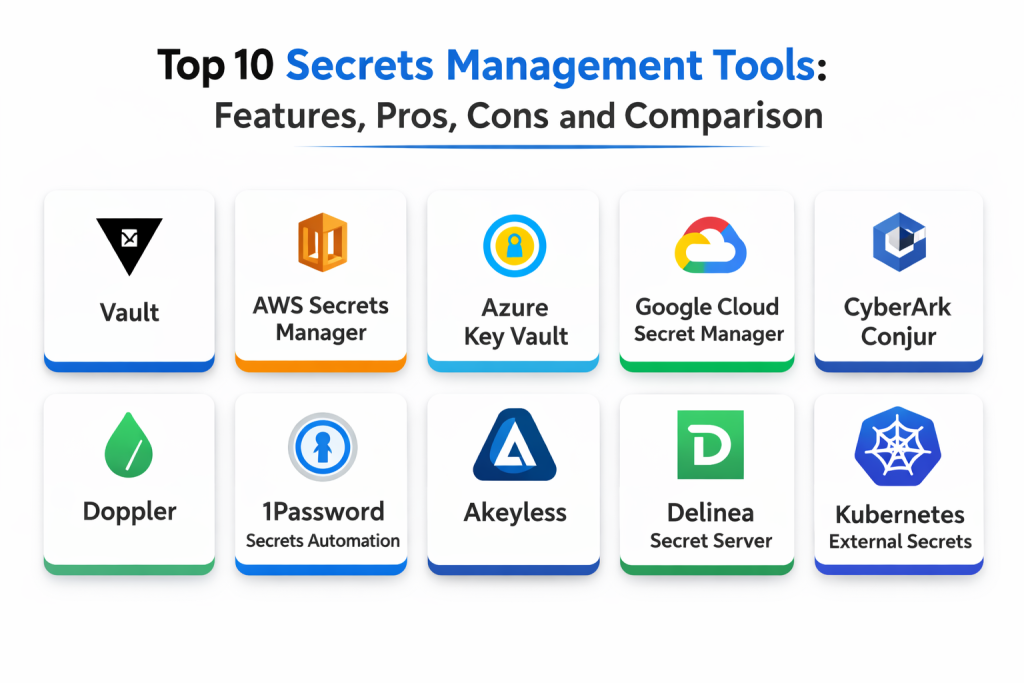 Secrets management tools store, protect, rotate, and control access to sensitive values like API keys, database passwords, certificates, tokens, and encryption keys. Instead of hardcoding secrets in code or keeping them in plain config files, these tools centralize secrets in a secure vault and deliver them to approved systems only when needed. In simple terms, they stop โ€œpassword sprawlโ€ and reduce the chance of leaks.